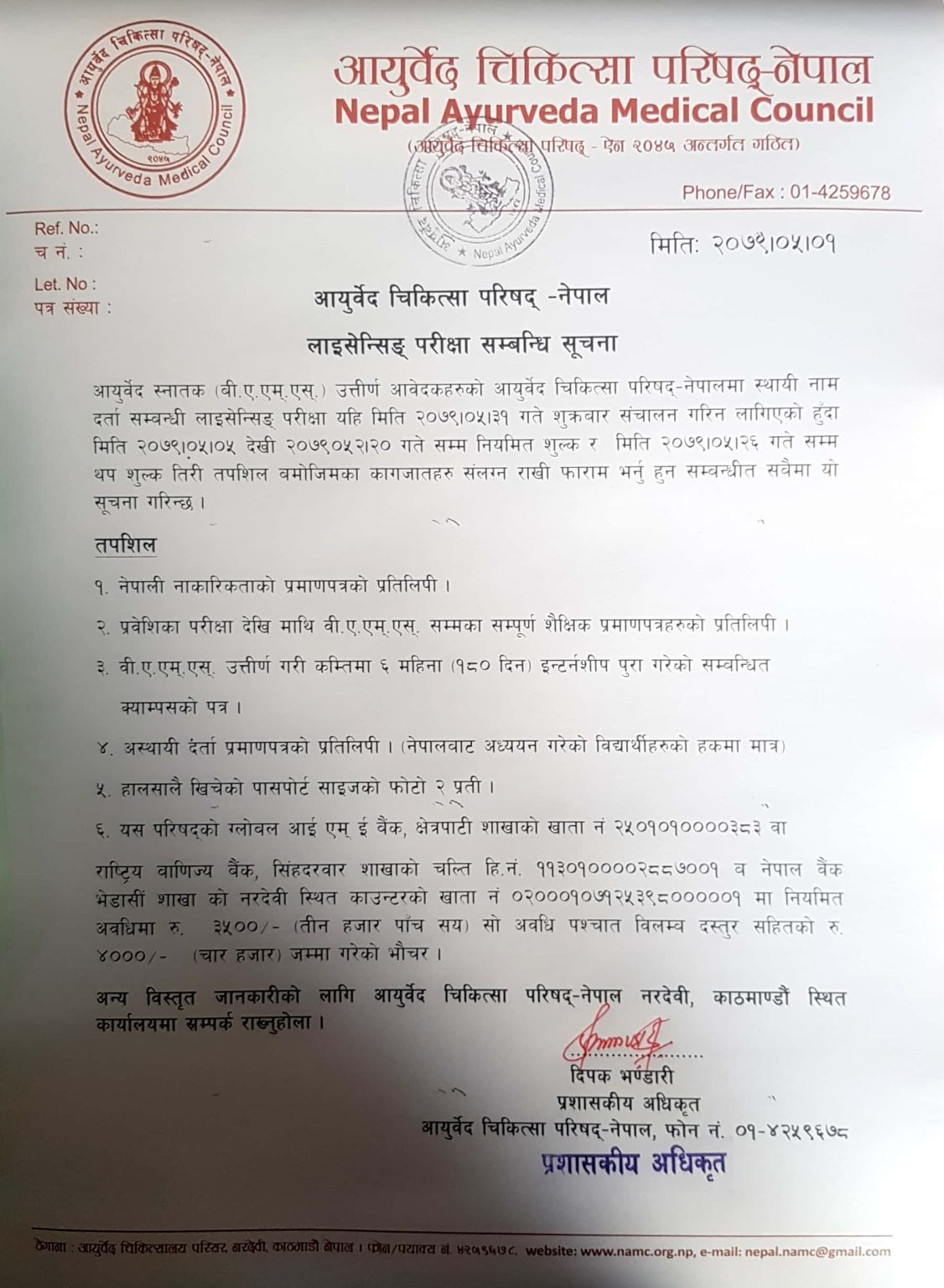 नेपाल आयुर्वेद चिकित्सा परिषद् (नेपालको लाइसेन्सिङ् परीक्षा सम्बन्धि सूचना)